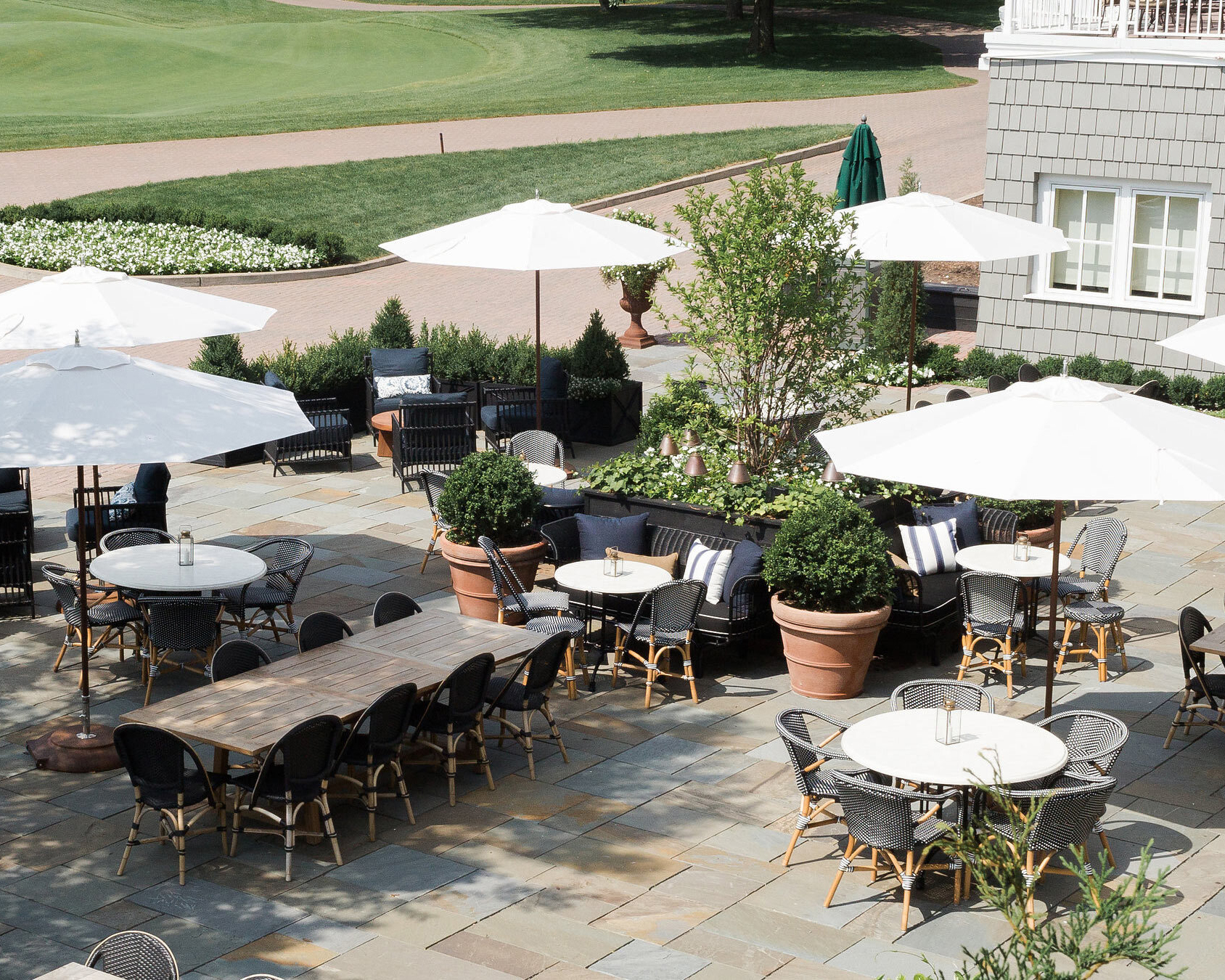 The club’s evolving design aesthetic is a graceful nod to heritage—while also meeting the ease and comfort today's members expect. Nowhere is this blend more felt than in the curated furnishings that shape its gathering spaces, indoors and out. The clubhouse remains a beacon of community, where thoughtful design sets the scene for connection and celebration after a match.